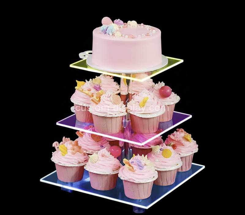 Custom acrylic 3 tiers LED cake tower designed to create a stunning centerpiece for weddings, parties, and bakery displays. Built-in LED lighting beautifully highlights each tier, enhancing presentation and visual appeal. Made from premium clear acrylic, sturdy and elegant. Custom sizes, colors, and branding options available.