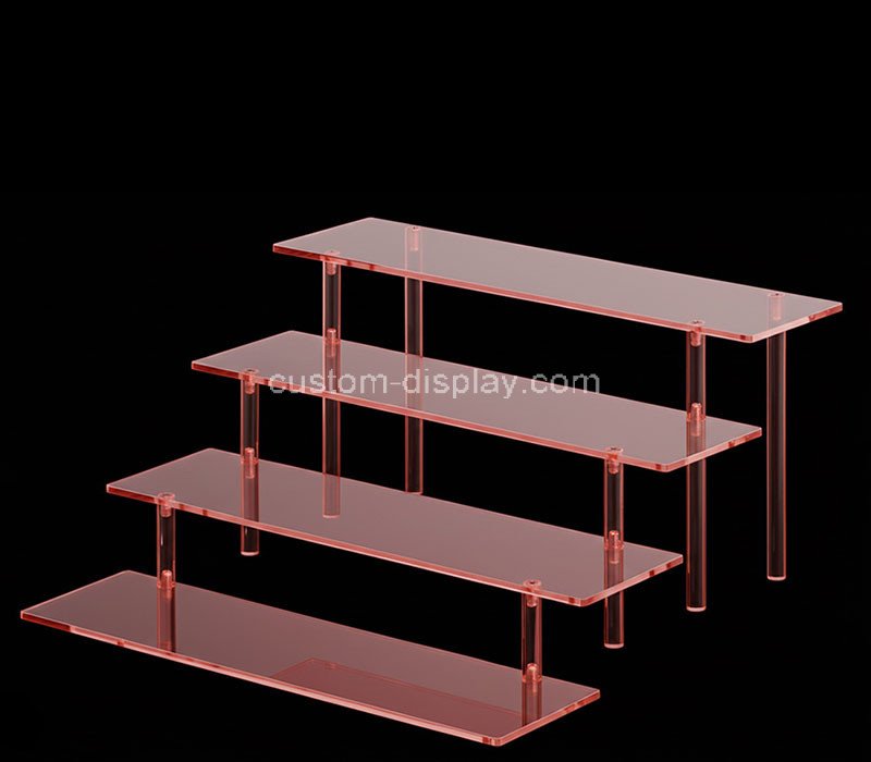 Custom translucent pink acrylic 4 tiers cosmetics display risers – Stylish and functional, perfect for displaying makeup collections with elegance. Made from premium-quality acrylic for durability and shine. Delivered straight to your door, with all taxes fully paid for a smooth, worry-free buying experience.