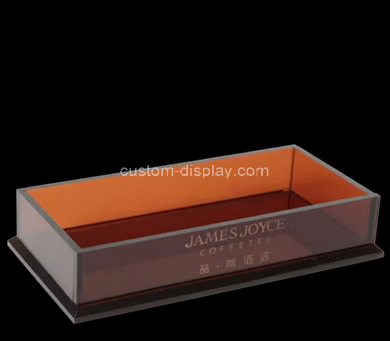 Custom translucent brown acrylic bath cap shaver sanitary ware tray, designed for stylish and practical storage. This tray is perfect for holding bath caps, shavers, and other sanitary items, offering a sleek and organized solution for your bathroom. Durable, easy to clean, and adds a touch of elegance to any space.
