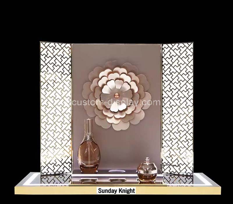 A sleek, custom-designed acrylic display prop with integrated LED lighting, perfect for showcasing cosmetics. The modern design enhances product visibility and appeal, making it an ideal addition to retail environments and promotional events.