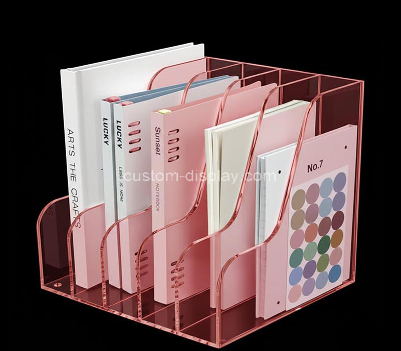 Custom translucent pink acrylic desktop file sorter with 5 dividers for organized storage. Elegant and durable, it helps keep documents, folders, and papers tidy while adding a modern touch to your workspace. Ideal for home or office use. Delivered tax-free straight to your door for complete convenience.