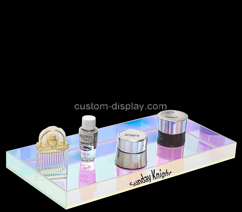 Elevate your beauty displays with this shimmering, customizable acrylic tray, perfect for showcasing skincare and perfumes. Durable, stylish, and available in bulk for retailers. Ideal for salons, boutiques, and luxury brands. Wholesale inquiries welcome!