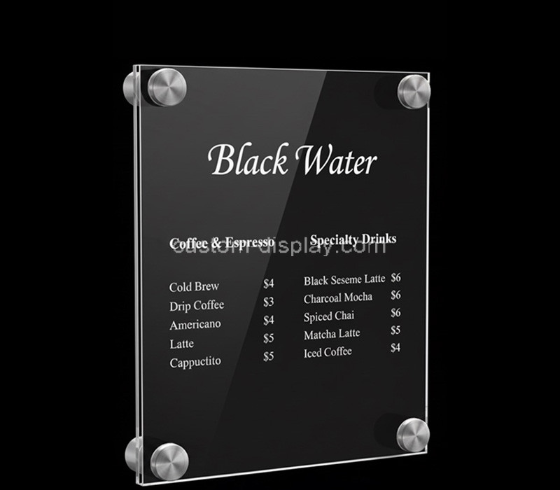 Custom acrylic wall coffee shop menu holder crafted for a clean, modern presentation. Made from high-quality clear or colored acrylic, it securely displays menus, promotions, or price lists. Easy wall mounting saves counter space while offering durability, easy cleaning, and customizable sizes, layouts, and logo branding for cafés.