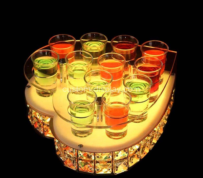 Wholesale Custom Acrylic Bar Shotglass LED Holder: Durable, vibrant LED-lit acrylic holds shot glasses, perfect for bars, parties, and events. Enhances ambiance with customizable colors.